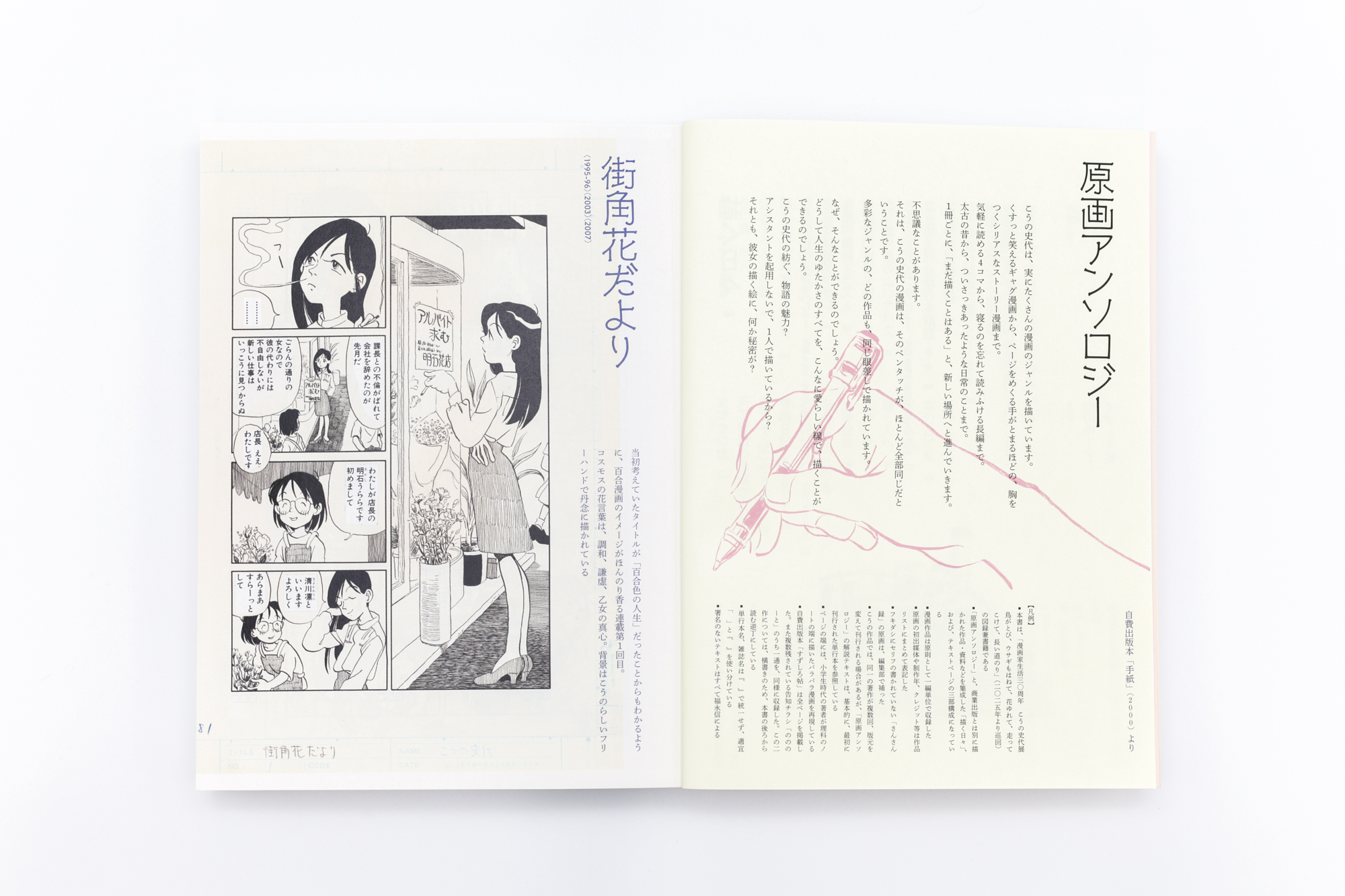 As a bonus, the back of the book offers reprints of Suzushiro cho (Suzushiro Notebook)—a 1997 self-published booklet starring Kouno’s pet budgie—and a 1998 issue of the Nono noto (Nono Notes) newsletter distributed by Kouno at indie manga fairs.