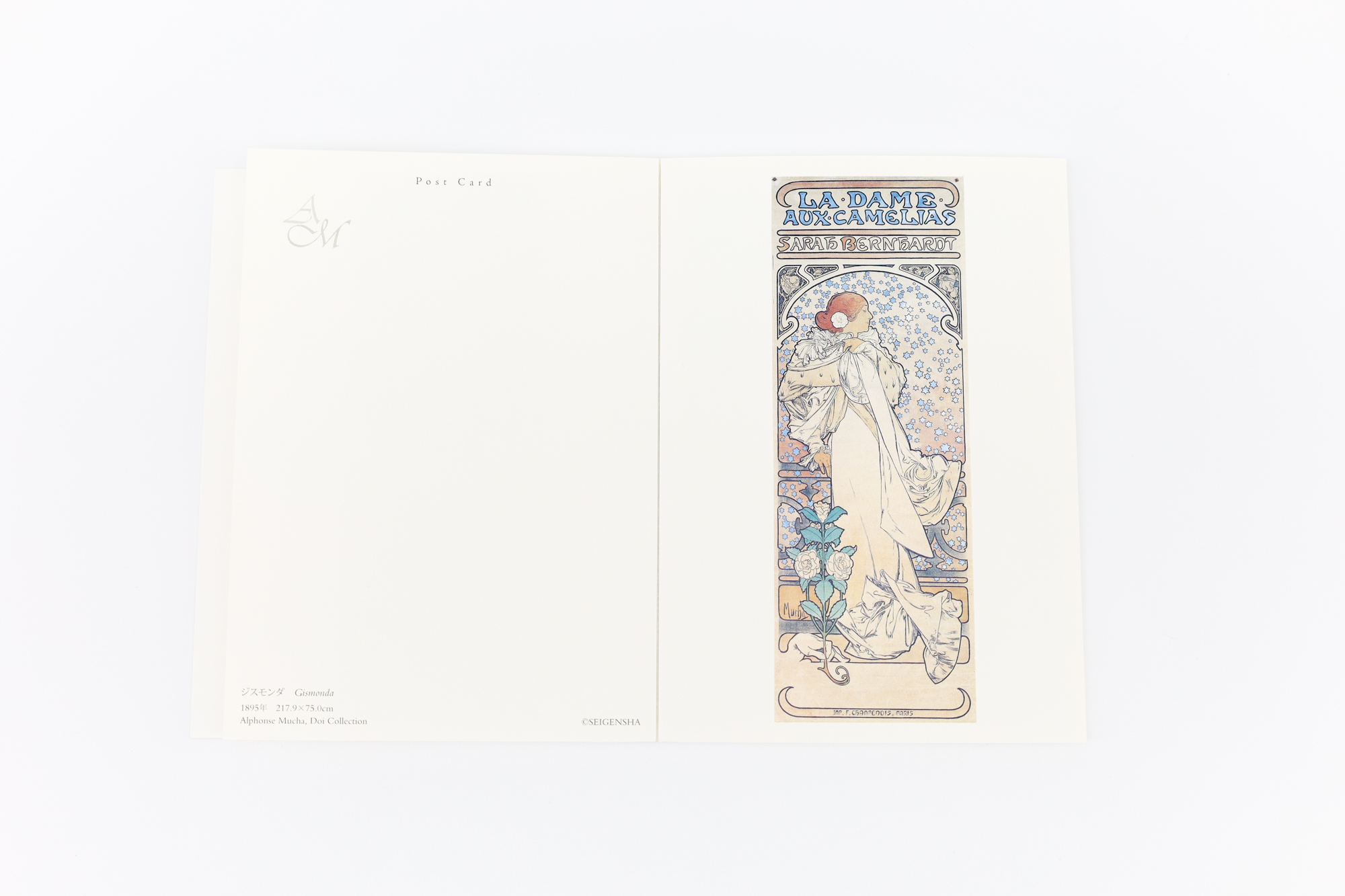 As one of the foremost artists of the Art Nouveau movement, Alphonse Mucha worked in a diverse array of genres from painting to illustration, posters, and product design, making him a forerunner of the multidisciplinary artist of today. This postcard book reproduces 32 selected masterpieces from the collection of the Sakai Alphonse Mucha Museum. In the words of the preface by art historian Furutani Yoshiyuki, in his posters “Mucha started with representations of the female figure rendered through the expertise he had cultivated as a painter and embellished them with geometrical motifs and stylized blossoms, tresses, and costumes. This fusion of painting with decorative art is the hallmark of his oeuvre. Today, the fusion of fine arts such as painting and applied arts such as design is practiced as a matter of course, and it is no doubt because Mucha was a pioneer in this respect that he exerts such an enduring pull over viewers in their youth and beyond.”